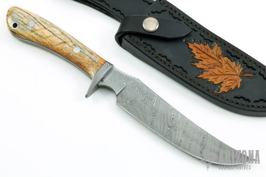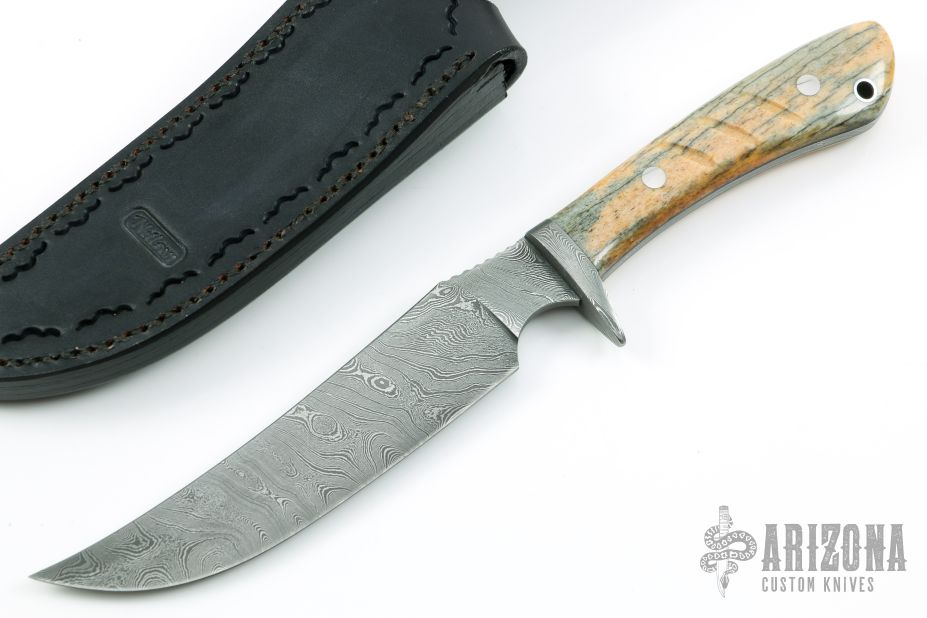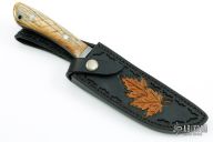 As a firm believer that a knife and sheath should come as a set and complement each other, each fixed blade knife comes with a custom fitted sheath. The leather work is done by some of the best traditional and primitive style leather crafters in the USA, using a variety of leathers, both domestic and exotic. Each sheath is designed for each individual knife using custom carving, tooling, inlays, etc."