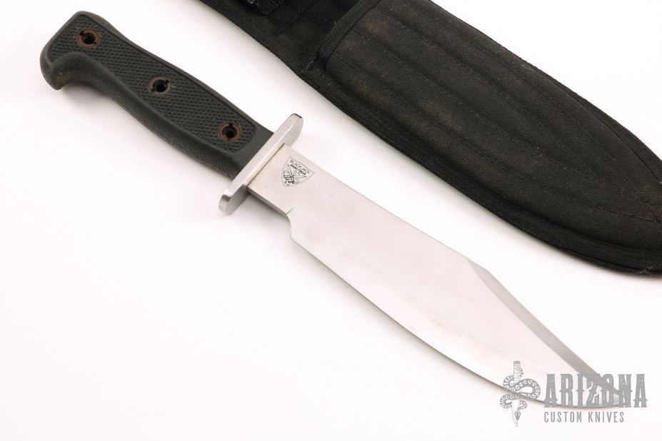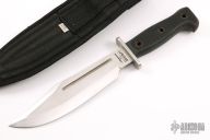 This Anaconda I by Blackjack Knives features a satin finished clip point blade with a false top edge, 5/32" blade stock and 1 3/4" blade depth, hidden tang construction. The handle has a stainless steel guard and rubber handle. Comes with a black nylon sheath. Has some scratches, otherwise good condition.