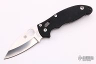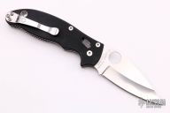 This Spyderco Manix 2 has a satin finished blade, thumbhole and notched thumbrest. The handle is comprised of black G10 scales over steel liners and backspacer. Lanyard tube in pommel. Includes a Spyderco box. Stainless steel reversible tip up clip. Excellent condition.