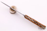 James Scroggs sold his first knife in 1985 and specializes in making straight knives that are lightweight for their size, with a preference for high-grade wood handles. He produces his own designs of hunters, hide-outs, and fighters. In 2012, 2014, and 2016 he won the Best Hunter award at the Branson Hammer-In & Knife Show. Voting member of the Knife Makers Guild.
