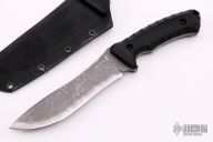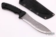 This Nebula by Kiku Matsuda features a drop point recurve blade with false top edge and notched thumbrest, .166" blade stock and 1.466" blade depth, full tang construction. The handle has black canvas micarta scales, lanyard hole. Comes with a kydex sheath. Excellent condition.