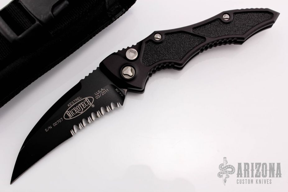 Blade Details Drop Point, Has Serrations, Hawkbill