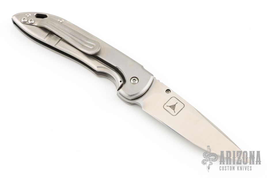 This TAD Edition K2 framelock flipper features a satin finished blade and an orange peeled and milled titanium frame. Titanium clip is positioned for tip up carry. Includes IKBS (Ikoma-Korth Bearing System) for smooth and fast opening that requires no wrist action. Strong detent. Perfect blade seating, detent, and lockup. Excellent work with great attention to detail. Knife comes with original box. Knife is in excellent condition.