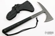 The Kestrel Feather is a lightweight and more compact version of the venerable 18" Eagle Talon. This multi-roll tomahawk was designed to be fast and light, it comes in at just 19oz, and 13.25" long. It offers full tang construction made from 1/4" 80CRV2 carbon steel that has a Tungsten Cerekote finish for corrosion resistance and wear. This is a heavy use tool, the full tang construction absorbs the punishment while the hardened striking surface on the head delivers it back without chipping or shattering. The permanently attached G10 handle scales offer a contoured 3D texture that works great both wet and dry without being overly aggressive. The 3 inch forward edge is razor sharp and that is combined with a 3" distal tapered spike that can be used for digging, shattering tempered glass, penetrating sheet metal, it can be used to hack through concrete and wood, to breaking chains and hardened padlocks. One tool, many tasks is the idea behind our tomahawks, We want you to never leave home without being prepared, whether that's an emergency situation or exploring the next vista to watch a killer sunset. The Kestrel Feather tomahawk is a very capable, lightweight hiking and camping tool. From chopping wood, to camp site clearing, food preparation, the tomahawk is an incredible cutting tool for a lot of tasks. It is also an important piece of kit for first responder's that require a tool for breach and extraction work. The 13.25" length won't impede movement yet can make quick work of anything that it comes in contact with! Comes with original box and papers. New from maker.