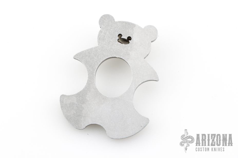 This Teddy Knuxpin Knuck is made from .250" thick T6 aluminum. It is a half knuck in the shape of a cute Teddy Bear. Large finger holes for comfort. Brand new from maker.