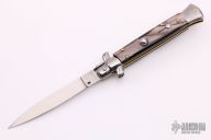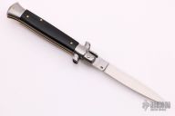 This Swivel Bolster Auto has a stainless steel spear point blade. The handle is composed of a steel front and rear bolsters, brass liners all complemented by buffalo horn scales. Excellent Condition.