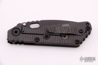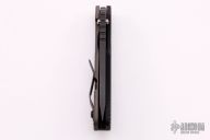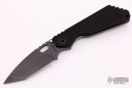 This SNG GG by Mick Strider features a black tanto blade with notched thumbrest and thumbhole. The handle has a gunner grip black aluminum and flamed titanium frame with matching tip up clip. New from maker.