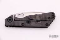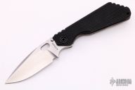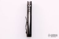 This SNG GG by Mick Strider features a stonewashed blade with notched thumbrest and thumbhole. The handle has a gunner grip black aluminum and flamed titanium frame with matching tip up clip. New from maker.