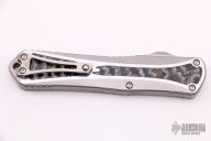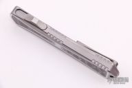 This Manticore X by Heretic Knives features a double-edged mirror polished blade with satin flats. The handle has a two-tone stainless steel frame with mirror polished flats and blasted finish otherwise, beautiful seamless mammoth tooth inlays, stainless steel thumb slide and a tip down titanium clip with ball bearing. Comes with original box, zippered case and COA dated 8/20 and s/n 011. New from maker.