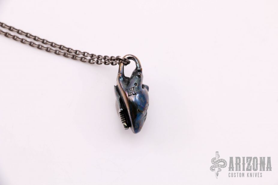 This Heart pendant by Scott Lunsford has a silver dagger on the back. Comes with a 26" silver chain. Excellent condition.