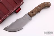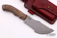 The Tom Brown Tracker is one of the most iconic survival knife designs on the planet. It has also been one of the highest selling TOPS models in the 20 years that we’ve been in business. So it only makes sense that one of TOPS' 20th-anniversary limited edition knives be a Tom Brown Tracker. We decided to use the Tracker #3 specifically. It has been upgraded from 154cm to S35Vn steel, Brown Burlap Micarta, custom quality burgundy leather. This is one that will definitely become a collector’s piece for many. This knife is in excellent condition, also comes with an emergency whistle.