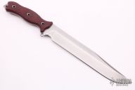 This Jack Hammer 10 by Busse Knives features a competition finished blade and maroon canvas micarta scales. .214" blade thickness and 1.548" blade depth. Full tang construction. New from maker.