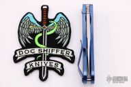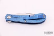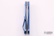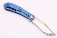 This Backpocket Flipper by Doc Shiffer features a satin finished blade with flipper and fileworked thumbrest. The handle has a laser engraved and anodized titanium frame with and anodized titanium tip up clip. Rides on bearings, nice detent, lockup and blade seating. Comes with a hard case and COA dated 8-6-20. New from maker.