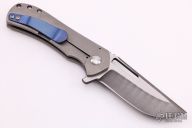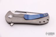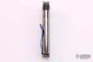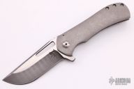 This Recon Flipper by Doc Shiffer features a Vegas Forge Damascus blade with satin finished flats, flipper and fileworked thumbrest. The handle has a stonewashed finished titanium frame with an anodized titanium tip up clip. Rides on bearings, nice detent, lockup and blade seating. Comes with a hard case and COA dated 8-8-20. New from maker.
