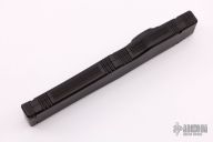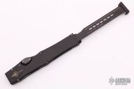 This CFO II (Combat Front Opening) by Marfione Custom Knives is dated 09/2003 and #157, it features a mirror polished blade with satin finish. The handle has black aluminum frame. Push button firing on the handle side. Closes by disengaging the leaf lock and retracting the charging handle. Excellent condition.