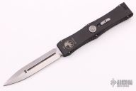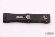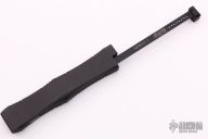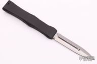 This Nemesis II OTF automatic by Microtech opens via the automatic push button. Closes by disengaging the leaf lock and pulling the reverse charging handle in the rear of the frame. Contoured frame grip with milled ribbing on the frame spine and belly. S/N 068 and dated 06/2003. Excellent condition.
