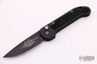 This Mini UDT by Microtech has a black plain edge blade. The handle is black aluminum with non-slip inserts. Side opening coil-spring automatic. Dated 08/2002 and s/n 1318. Excellent condition.