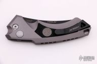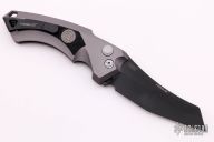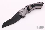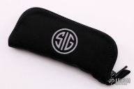The EX-A05, by Hogue Knives and Sig Sauer, features a black coated blade made from CPM-154 steel. The handle is charcoal aluminum. Includes a black stainless steal, reversible clip, tip up carry. The knife has a forward fire safety. There is a lanyard hole towards the butt of the knife. Includes original box, papers and padded zippered case with an extra clip. Excellent condition.