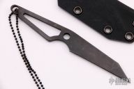 This Thorn by Medford Knives features a black chisel ground wharncliffe blade, .197" blade stock and .782" blade depth, full tang construction. The handle is skeletonized with lanyard hole. Comes with kydex neck sheath, original box and papers. Has some scuffs, otherwise excellent condition.