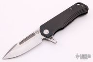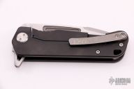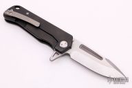This Proxima by Medford Knife and Tool featured a stonewashed spear point blade with fullers and a notched flipper tab. The handle is composed of black PVD coated titanium and a stonewashed tip up pocket clip and a lanyard hole. Includes the original box and papers. Excellent Condition.