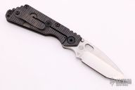 In 1988, he began making specialized knives for use by the military. This turned out to be fortunate turn of events, both for Mick and for the knife using world at large. Mick’s approach was to not get burdened by the weight of past designs. He started with a tabula rasa, a clean slate, informed only by his own experiences and knowledge of what a soldier needed in a knife. The knives he made didn’t look like the hunter-inspired knives seen in most PXs; instead they were almost brutish in their functionality: beefy, solid, and with unbreakable ¼” stock full tangs. These knives were the first indication of his innovative approach: in addition to their utilitarian design, the knives carried a subdued finish and subdued sheaths. No one carrying a Strider knife was going to be spotted because of sunlight glinting off of polished steel or a glossy leather sheath. Soldiers, policemen, and other men going into harm’s way couldn’t buy them fast enough. Mick sampled some good ideas, but made them great. For instance, he was not the first to wrap a knife handle with paracord, but he was the first to do it in a way that was tough enough for sustained infantry use. His knife line grew over the following years to include different varieties of fixed blades, all distinctive and many with specialized uses. But constant in all of them was a disregard for convention, and a desire to try new ideas. An example of this was the Ajax – it featured a very wide blade surface clearly designed to inflict damage. It drew on the weapons carried by Roman legionnaires, yet was modern and usable in the 21stCentury battlefield. Mick also worked on his technical skills, always striving to become better at the physical craft. At the 2002 Blade Show, a group of the best tactical knifemakers in the country decided to compete with each other to produce the most innovative and interesting fixed “battle blade” at the show. Mick’s entry, an incredible integral knife made out of ½” titanium stock with a zippered composite blade, gorgeous handles, and integral guard was the unanimous winner, and effectively retired the competition.