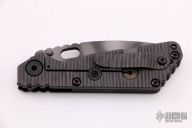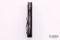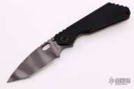 This MSC SNG framelock folder by Mick Strider features a tiger striped tanto blade and a dimple pattern black aluminum and flamed titanium frame and tip up titanium clip. Includes Hinderer "Lock Bar Stabilizer" for maximum reverse lock retention. Nice detent, lockup and blade seating. New from maker.