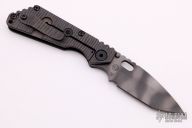 In 1988, he began making specialized knives for use by the military. This turned out to be fortunate turn of events, both for Mick and for the knife using world at large. Mick’s approach was to not get burdened by the weight of past designs. He started with a tabula rasa, a clean slate, informed only by his own experiences and knowledge of what a soldier needed in a knife. The knives he made didn’t look like the hunter-inspired knives seen in most PXs; instead they were almost brutish in their functionality: beefy, solid, and with unbreakable ¼” stock full tangs. These knives were the first indication of his innovative approach: in addition to their utilitarian design, the knives carried a subdued finish and subdued sheaths. No one carrying a Strider knife was going to be spotted because of sunlight glinting off of polished steel or a glossy leather sheath. Soldiers, policemen, and other men going into harm’s way couldn’t buy them fast enough. Mick sampled some good ideas, but made them great. For instance, he was not the first to wrap a knife handle with paracord, but he was the first to do it in a way that was tough enough for sustained infantry use. His knife line grew over the following years to include different varieties of fixed blades, all distinctive and many with specialized uses. But constant in all of them was a disregard for convention, and a desire to try new ideas. An example of this was the Ajax – it featured a very wide blade surface clearly designed to inflict damage. It drew on the weapons carried by Roman legionnaires, yet was modern and usable in the 21stCentury battlefield. Mick also worked on his technical skills, always striving to become better at the physical craft. At the 2002 Blade Show, a group of the best tactical knifemakers in the country decided to compete with each other to produce the most innovative and interesting fixed “battle blade” at the show. Mick’s entry, an incredible integral knife made out of ½” titanium stock with a zippered composite blade, gorgeous handles, and integral guard was the unanimous winner, and effectively retired the competition.