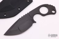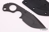 This SLCC by Mick Strider features a black nightmare ground blade with notched thumbrest, .214" blade stock and 1.636" blade depth, full tang construction. Comes with a kydex sheath. New from maker.