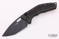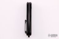 This Medusa by Heretic Knives features a DLC tanto blade with false top edge, notched thumbrest. The handle has a black aluminum frame with checkered push button, black backspacer and a tip up stainless steel clip with ceramic ball. Comes with original box and drawstring bag. Excellent condition. #00247