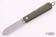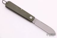 The SPD Edition of the Terrain 365 Otter Slip Joint is a modern, technical iteration of the classic Barlow pattern featuring their rustproof, edge holding Terravantium™ blade. Like its animal namesake, this pocket knife is at equally home in the water or on land. Available with titanium liners and PDW exclusive OD Green G10 scales. The Barlow pattern is one of the most enduring classic slip joint models ever created. It's appeal is in its simplicity, pragmatism, and usability. We looked to this great classic to create our own modern version. One of the unique carryovers is the lanyard bail where a leather wrist thing or knotted lanyard can be attached to. The Otter Slip Joint is an all around pocket knife for everyday carry, updated with technical, modern materials, precision machined parts, and a legacy design distilled down to its core characteristics that is utterly relevant today as it was when first introduced in 1670. Comes with original box and zippered case. Excellent condition.