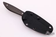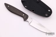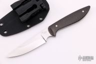 Mastersmith Bill Burke created this exceptional utility knife with the idea of creating a perfect every day carry knife. The 52100 carbon steel blade was triple quenched and triple tempered for grain refinement and optimal edge holding, .101" blade stock and .891" blade depth, full tang construction. Many makers and collectors feel that 52100 is among the best steels available for knifemaking. A differential heat treatment ensures strength and durability. The lightning strike carbon fiber handle is nicely rounded for a sure, comfortable grip. Copper strands are interwoven throughout the carbon fiber weave. This type of carbon fiber was originally designed for use on fighter jets to redirect electricity. Lightning strike carbon fiber is among the hardest to find knifemaking materials. The knife is accompanied by a sturdy Kydex belt sheath that is sure to keep this knife at the ready when not on display. Adding a Tek-Lok allows for easy belt carry. Adding paracord would allow it to be used as a neck knife. An excellent knife from Bill Burke that is a unique digression from his norm, and truly a hard to find, superior little performer! Excellent condition. Comes with a COA from Blade Gallery.