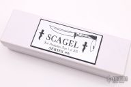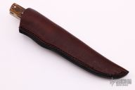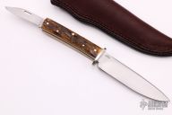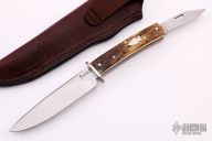 This Scagel Series #6 by Northwoods Knives is 1 of 200. It features a drop point blade with .124" blade stock and 1.052" blade depth, full tang construction. The handle has a nickel silver guard, stag scales, stainless steel liners. The handle holds a satin finished slipjoint blade with "2005" on the ricasso. Comes with brown leather sheath, original box and papers. Has some light oxidation spots, otherwise excellent condition.