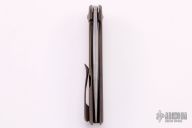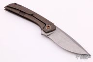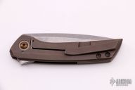 This Prospect, by Tuff Knives, features a stonewashed nitro V blade with a false top edge. The handle is composed a bronzed titanium frame, backspacer and tip up pocket clip. This knife includes moon glow pivots.  Excellent fit and finish. Dead center blade seating, smooth action and nice detent. Includes C.O.A. BRAND NEW FROM MAKER.
