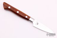 This Paring Knife by Ichiro Hattori features a satin finished blade with .059" blade stock and .761" blade depth, full tapered tang construction. The handle has stainless steel bolsters and wood scales. Comes with original box and papers. Excellent condition.