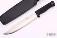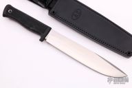 The Model A2 by Fallkniven is a semi-large all-purpose knife for heavy-duty use. The powerful blade is made of extremely hard yet tough laminated VG10 steel and will withstand the stress of hard use. The knife is superb to chop with, but also works very well with daily tasks, thanks to the ergonomic grip. The full tang goes entirely through the handle, so you can strike the end of it without breaking the grip. The sturdy black zytel sheath allows you to fasten the knife on your belt or your pack - even upside down. Model A2 is a water repelling concept which works just as well in extreme cold as in stifling heat. Blade is .233" thick and 1.409" deep. Comes with black leather sheath with belt loop. Excellent condition.