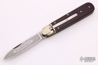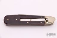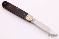 This lever lock auto by Boker features a drop point blade, nickel silver bolsters, red bone scales, brass liners and stainless steel backspacer. Has some light scratches and patina, otherwise excellent condition.