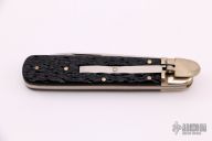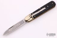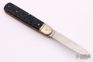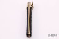 This lever lock auto by Boker features a drop point blade, nickel silver bolsters, jigged Bakelite scales, brass liners and stainless steel backspacer. Has some light scratches and patina, otherwise excellent condition.