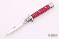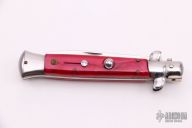 This swivel bolster auto was made in Germany, it features a polished blade. The handle has stainless steel bolsters and butt, pearlex scales and stainless steel liners. Strong opening. Has safety. Has some scratches, otherwise good condition.