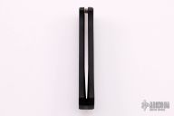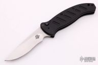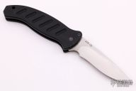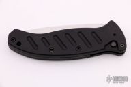 This Combat Auto by Woodard Knives has a hand rub satin finished blade. Handle is black aluminum with milled contours and lanyard hole. Has some light scuffs and scratches, appears to have been resharpened, otherwise good condition.