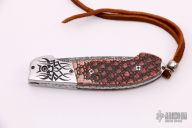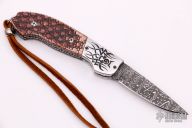 Mike "Whiskers" Allen and his wife Denise have been in the custom knife business since 1984. Mike has been a member of the Knife Maker's Guild since 1989. He has built a great reputation specializing in custom folders, scale release autos, and bolster release autos. "I take pride in sole authorship of my knives. From the basic design, grinding and assembly, to the embellishments of file work, and engraving."