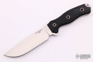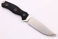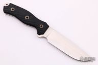 This INFI Ratmandu by Swamp Rat Knives features a satin finished clip point blade with a full height flat grind, .187" blade stock and 1.379" blade depth, full tang construction. The blade material is the famous INFI. The handle has black G-10 scales with a lanyard hole at the butt. Excellent condition.