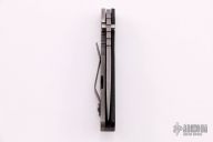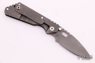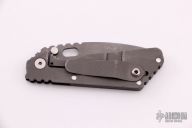 This PT by Strider features a bead blasted blade with notched thumbrest and thumbhole. The handle has a black G-10 and bead blasted titanium frame with matching tip up clip. Has some scuffs on the frame and blade, otherwise excellent condition.