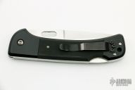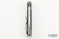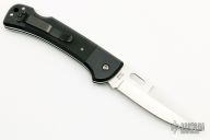 This knife by AG Russell features a satin finished blade with false top edge and thumbhole. The handle has a black aluminum frame with black G-10 inlays, stainless steel backspacer, tip up black stainless steel clip. Comes with a zippered case. Excellent condition.