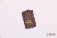 This handmade pure copper pendant features a stylized Japanese mask with traditional ornament and a 24k gold inlaid accent. Includes a stainless steel chain and original box. New from maker.