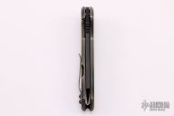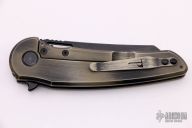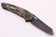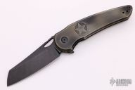 This OSF (Open Source Folder) features a black sheepsfoot style blade with jimping on the spine. The frame is titanium with a Army scene. The pocket clip is finished with the same treatment and positioned for tip up carry. Knife features Mr. Hoback's Roller Detent System (HRD) which makes this knife a very smooth opening flipper. Blade is centered when closed and locks up with no play. Comes with original box and papers. Excellent condition.