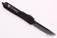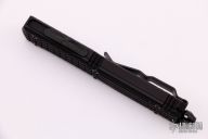 The Ultratech is a precision-made, out-the-front tactical knife. Has a fluted DLC standard tanto blade. Black frag pattern aluminum handle with black hardware, tip down stainless steel clip and nickel boron internals. Comes with original box and papers. Excellent condition.