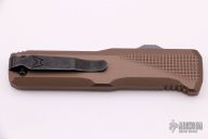 This Phaeton by Benchmade features a DLC drop point blade. The handle is brown aluminum with a tip down black stainless steel clip, left or right reversible. Comes with original box and papers. Excellent condition.
