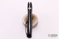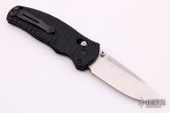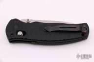 This 1000001 Volli by Benchmade features a stonewashed drop point blade with swedge and dual thumb studs. The handle is comprised of carved and contoured G10 scales over a black coated steel sub frame and notched black G10 backspacer. Sliding safety on spine. Assisted opening with AXIS lock. Excellent condition.