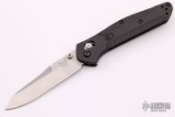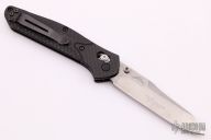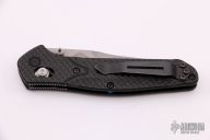 This Benchmade Osborne 940 features a tumble finished clip point blade with swedge and dual thumb studs. The handle is comprised of a machined carbon fiber frame and a black coated, steel tip up clip is reversible for right or left hand carry. Comes with original box and papers. Excellent condition. FPR #694/750