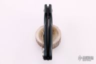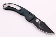 This 746 LUM Mini Onslaught Axis Lock Folder has a black clip point blade with thumb hole. Handle is black G10 over black stainless steel liners, black fiber backspacer, stainless steel tip up clip, and lanyard hole. Excellent condition. Comes with a Benchmade box and papers.